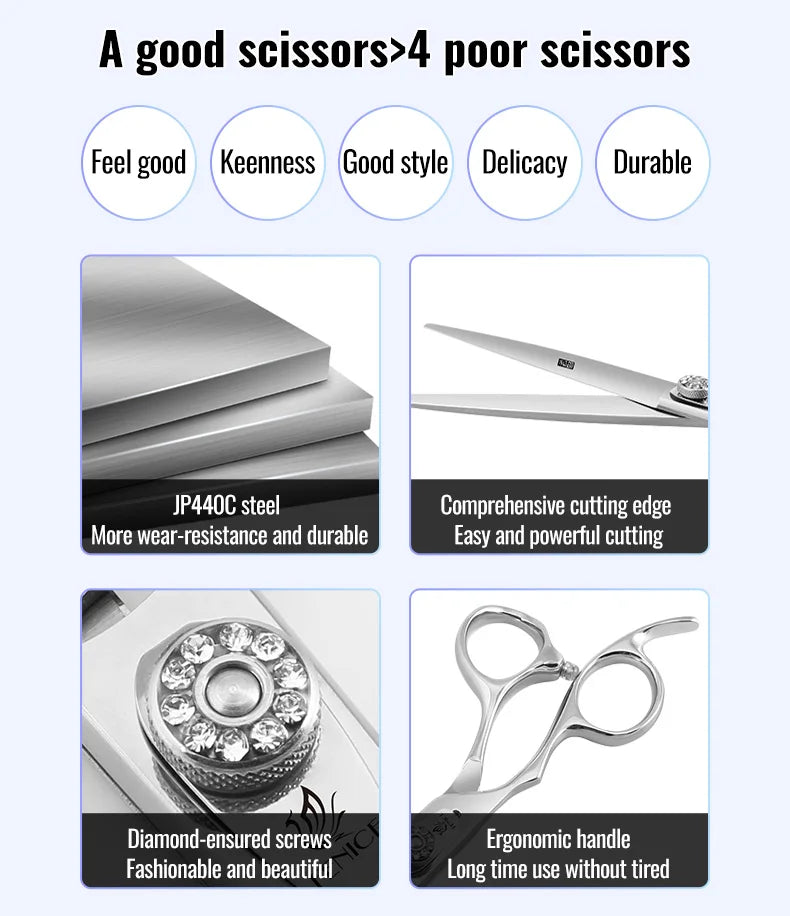 Fenice Left-handed Professional 7.0/7.5/8 inch JP440C Cutting Curved Fluffy Thinning Chunker Scissors Set Kit Pet Dog Grooming