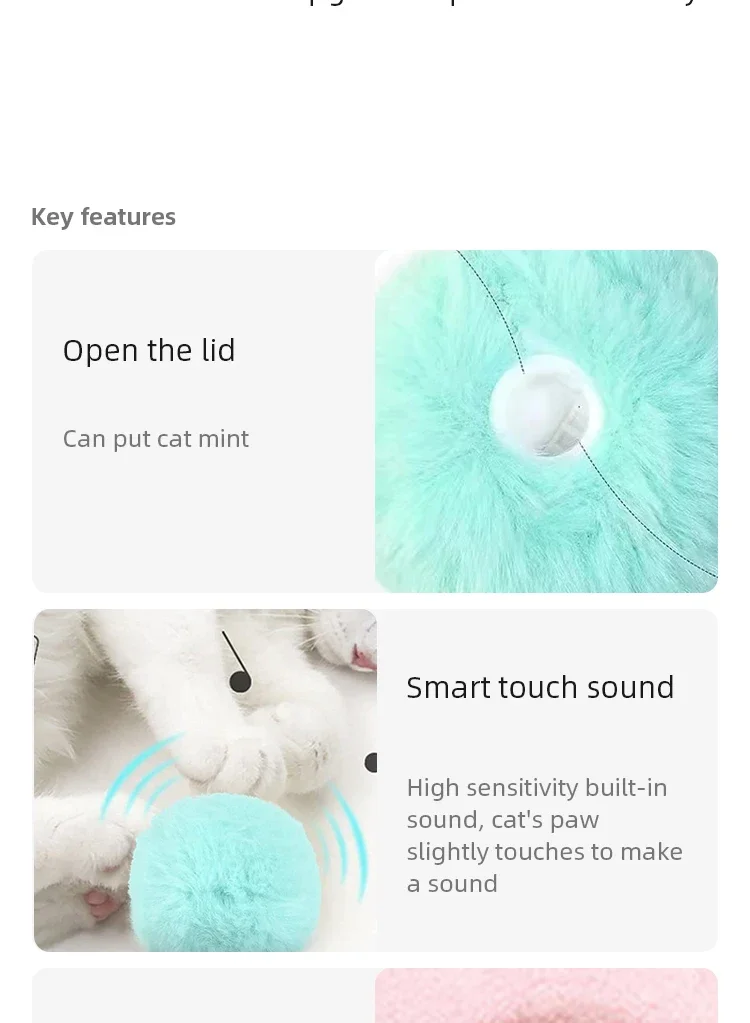 - The cat toy ball has a built-in high-sensitivity vocalizer. As long as the cat's paw gently touches the ball, it will make a sound.