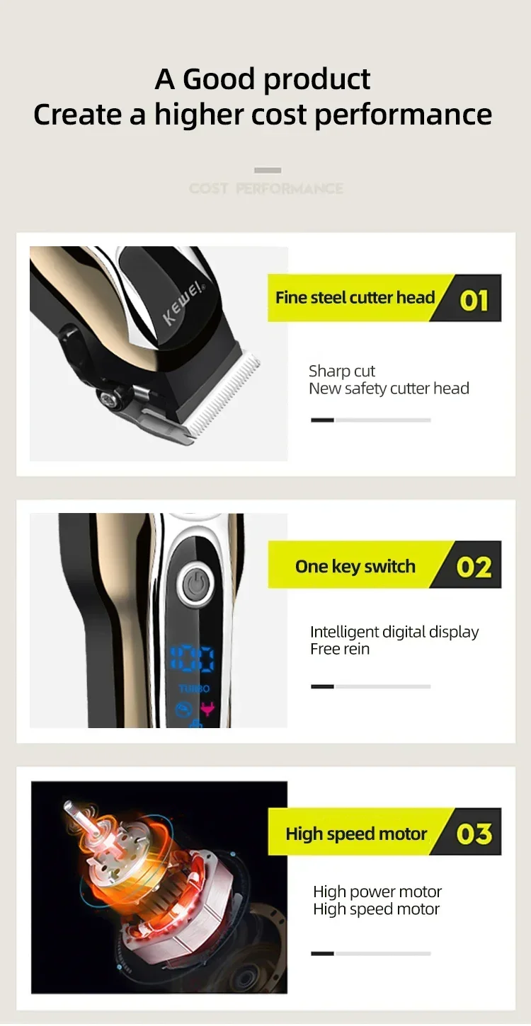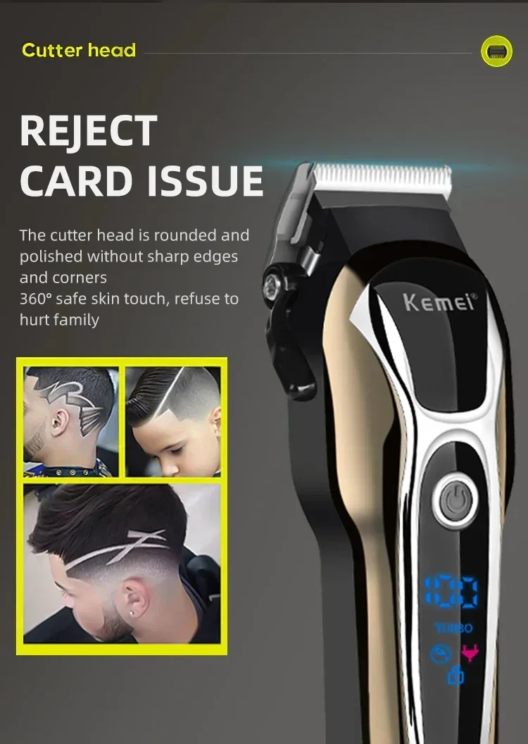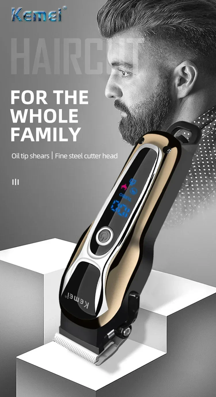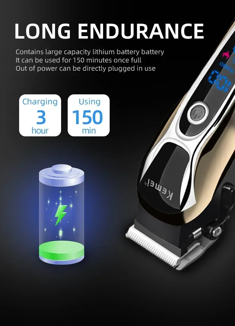 Professional Hair Clipper Kemei KM-1990 Rechargeable Trimmer Men Electric Cutter Hair Cutting Machine LCD Cordless Beard Trimmer